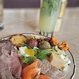 YUM! We came here for Saturday brunch while visiting Denver. The restaurant itself is bright and open. It was definitely more casual for brunch, and kid-friendly as well. Our server was great and checked in with us regularly. This Israeli buffet is well worth the $50 per person. They offer a wide variety of sweet and savory dishes, including pastries, fruit, dessert, vegetables, dips, fresh bread, meat, and fish. The buffet has something for everyone, with lots of vegetarian options. Some highlights for me were the freshly baked pita bread and dips, the shakshuka, the roasted vegetables, and the desserts. The carved lamb and prime rib were tender, though very fatty, so that wasn't my favorite. It would be fun if they also offered a bottomless mimosa bar option!